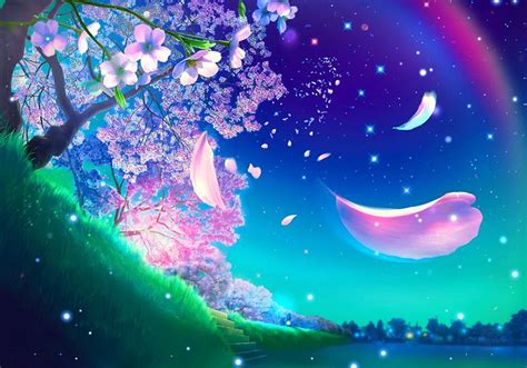 nature anime cherry blossom night wallpaper